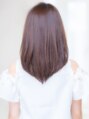 似合わせ小顔カット。Aラインのストレートスタイル。顔周りにレイヤーを入れて暗い髪でも軽さと柔らかさが出るようにカットします。前髪は下ろし流しで小顔に。カラーはブラウンベージュでツヤのある色に。【ブックマークをしてご提示下さい】