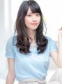 似合わせ小顔カット。傷みの少ないアクアモイストパーマで大きく揺れるワンカールを作り上品さを演出!前髪は流し女性らしさをプラス!暗髪でもふんわりな印象にしました!【お気に入り頂いたスタイルはブックマークして頂くと便利です】
