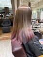 裾だけのグラデーションカラーブリーチ後にピンクを入れましたレイヤースタイルなので、スタイリング次第ではかなりピンクが目立つデザインです【立川/白髪ぼかし/インナーカラー/リタッチ/ハイライト/縮毛矯正/ブリーチ/カット】