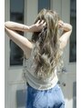 耳後ろにいれたオレンジのインナーカラーが可愛いポイントの外国人風ウェーブ スタイル。2~3回ブリーチを重ね赤みを消したうえでスモーキーグレーを入れました!最高の透明感でウェーブとの相性もGOOD!
