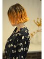 あえて根元は残すブリーチで、奥行き感と立体感を表現!伸ばしかけの方にもお勧めカラー。少し軽めな切りっぱなし ミニボブに、オレンジのビビットカラーの相性が最高です!個性を出したい方是非!