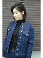 顎ラインの切りっぱなしボブ。アップバングにすることによって、クールな大人感がGOOD。センターパートでも可愛いし、内巻きも合う万能ミニボブです。