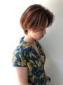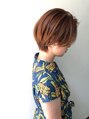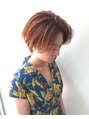 かき上げバングのクールショートに、今トレンドのオレンジカラー!!ブリーチは行っておらず、高明度のカラー剤を使いオレンジを入れさせていただきました。肌色にオレンジは合いますので、明るさやオレンジの彩度はお好みで調整いたします。
