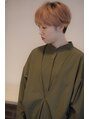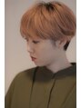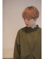 マッシュショートの耳掛けスタイルでトレンド感を出し、カラーは根元をあえて暗めに黒を残し、毛先はサーモンピンク。淡いピンクと根元の深みで奥行きのあるショートスタイルです。ブリーチは2回行っています。