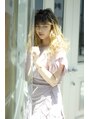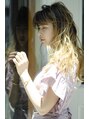 表面にレイヤーを入れ、ウェーブの立体感と浮遊感を出しました。カラーはバレイヤージュでケアブリーチを2回行い、オンカラーでアディクシーカラーのブロンドを入れ、外国人風に。