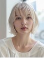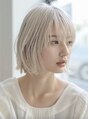 顎ラインで軽やかに収めたミニボブに、ホワイトベージュの透明感カラーをプラス。シースルーバングで抜け感を出し、重くならないエアリーな質感に。ハイトーンでも柔らかく見える大人可愛いボブです。