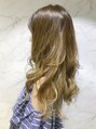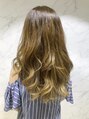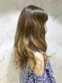 グラデーションカラーで立体感をプラスした重軽レイヤーロングスタイル。根元は暗めに、毛先に向かって自然に明るくなる様に内側にハイライトをプラスしたグラデーションカラーコテ巻きや毛先のみワンカール、外ハネなど巻き方によって変化するアレンジ◎