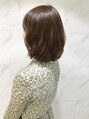 ツヤ感の出るアッシュブラウンのオーガニックカラー。重めにカットする事で艶があるナチュラルなミディアムスタイルに☆直毛の方はデジタルパーマを。ヘアビューロンでコテ巻きアレンジしても大人可愛いスタイルに。