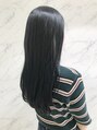 肌がキレイに見えるブルーブラックのオーガニックカラー☆カットはナチュラルな平行ラインのロング☆直毛の方はデジタルパーマを。ストレートアイロンで波巻きや外ハネアレンジしても大人可愛いスタイルに。ふんわりウェーブやアレンジしてもカワイイ◎