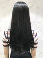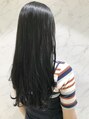 肌がキレイに見えるブルーブラックのオーガニックカラー☆カットはナチュラルな平行ラインのロング☆直毛の方はデジタルパーマを。ストレートアイロンで波巻きや外ハネアレンジしても大人可愛いスタイルに。ふんわりウェーブやアレンジしてもカワイイ◎