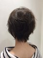 ネイビーが引き立つショートカットです。自然に柔らかく動きを持たせたショートカット!動きはスライドカットで作りました。