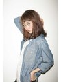 眉上の短めバングにナチュラルな抜け感のある、ゆるふわミディアム。ルージュベージュカラーでツヤとかわいらしさを。短めバングでもチャレンジしやすいナチュラルなスタイルです。
