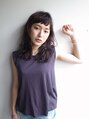 ワイドでサイドまで切り込んだショートバングがポイントのミディアムパーマスタイルです!前髪が重めにザックリと、パーマは縦長waveで外国人のくせの様なパーマです