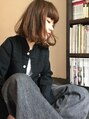 肩上の切りっぱなしボブに大きめのニュアンスパーマで今っぽい質感に。切りそろえた前髪でかっこよさを。ニュアンスパーマで柔らかさを。甘くなりすぎないボブです。カラーは人気のカーキアッシュで透明感を。