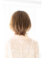 前下がりグラデーションボブ。顔周りを包み込むようにレイヤーを入れて小 顔効果を。ふんわりさせるためにアイロンでワンカールか、パーマでスタイリングが楽に。カラーはパールベージュで柔らかい質感に。