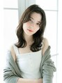 重めのワンレングスにセンターパートでの流し前髪、こなれ感アップなスタイル。目にかかるくらいの長さで目力を強調。大きな平巻きパーマを仕込めばスタイリングが楽に。カラーは少しバイオレッドを混ぜたショコラベージュで柔らかい雰囲気に。