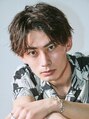 緩めのツイストをかけたアップバングです。リバースに流すことで男らしさを前面にだしています。タオルドライ後、前髪をかき上げながらドライ。ドライ後はツヤのあるハードタイプのスタイリング剤で束感を出しながら後ろに流してセットします。