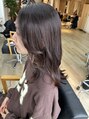 カットは全体の艶感を出し、顔周りに動きを出したBOXボブで適度なまとまりと動きを♪カラーリングはダークブラウンにパープル、ピンクを少し大人女子にも似合う綺麗なお色です!ファイバープレックスタンパクの力で毛先まで強く、艶々です♪