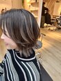 シャドールーツ(暗めからグラデーションする)ハイライトstyle、根本伸びて来た時気になりづらいです♪白髪ボカシにも最強なハイライトスタイル丸みとくびれの出るマッシュレイヤーはさり気ない一癖には最適です!