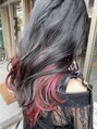 インナーカラーに強めレッドカラー♪ベースカラーが暗めだと少し派手なインナーカラーでもかわいいです!どんな色味でも可愛く仕上げます^ ^ インナーカラー/カラー/フェイスフレーミング/イヤリングカラー/ボブカット/ボブヘア/ブリーチカラー
