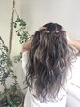 ベースのお色を暗めにして、細めのハイライトをたくさん入れる事で、重たくならずエアリーなカラーに。根元のなじみがいいのでメンテナンスらくちんカラーです。