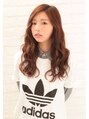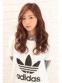 かきあげバングでカジュアルかつストリート風に!!大きくゆるいウエーブで柔らかさをだしつつ、しっかり決まります。センターパートでも斜め分けでも可能。雰囲気でチェンジ♪