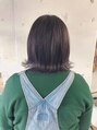 ハイライトを入れたラベンダーアッシュ。グレーを混ぜてるのでくすみのある色味が独特な雰囲気でオシャレな色に。カットは定番の外ハネボブですが、耳周りをしっかり毛量をとる事でシルエットが引き締まり、タイトな外ハネボブになってます。