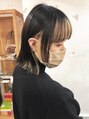 前髪から後ろまで下半分をブリーチしたデザインカラーのスタイルです。顔まわりにもパツっとしたラインをつくりデザイン感強めなスタイルにしました。