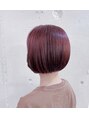 コンパクトなボブスタイル。耳掛けしてもおさまる長さです。ピンクのあるブラウンで秋の装いをスタイルアップ☆
