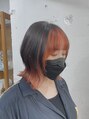 【インナーカラー】ブルーブラック×オレンジ ウルフボブ☆