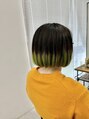 ブリーチカラーでボブにエンドカラーのライムグリーン