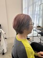 白髪ボカしのブリーチカラーでピンクとベージュのショート◎