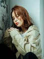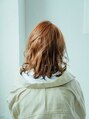 前髪長めのひし形フォルムのレイヤースタイル!カラーは全体ブリーチを1回から2回してオレンジ系カラーをオンカラーしています☆髪の毛の量が多い人は量感調節を!!【堀之内/京王堀之内】