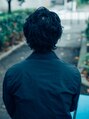 ワイルドにかきあげバングにリッヂ感の強めなカールで大人の男性らしさを出しました。黒髪で清潔感のあるスタイルでオフィスワークでもカジュアルスタイルにも使い分けできるスタイルです☆