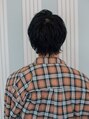 サイドパートでメリハリをつけたショートスタイル。表面にはウェーブで軽く動きがつくようにしているのでワイルドな印象もプラスされています。