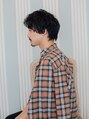 サイドパートでメリハリをつけたショートスタイル。表面にはウェーブで軽く動きがつくようにしているのでワイルドな印象もプラスされています。