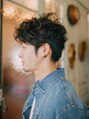 えりあし、耳まわりはすっきりとさせて、トップの長さを活かしてパーマアレンジしたオシャレメンズ必見スタイル☆カラーリングも程よく、毛先のみ、派手すぎないブラウンに。バングは流してさわやかに☆