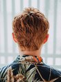 サイドはツーブロックのすっきりショートスタイルです。ハイトーンなのでワイルド感もプラス◎ハチ張りの方にもおすすめで、かぶってくる上の長さは骨格に合わせて調整してます。長さがあることでパーマ風の動きのあるスタイリングが出来ちゃいます!