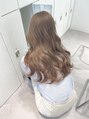 韓国風のハイトーンの毛流れヘア☆ブリーチ1回 オレンジっぽいミルクティーベージュになります。ハイトーンはレイヤーを入れ過ぎないのがポイント♪スタイリング剤はtrackバームでもちっとした質感を再現してます!!