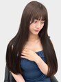 ココアブラウン ぱっつん前髪 サラ艶ロング 艶髪 美髪