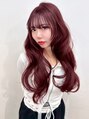 チェリーレッド 顔周りカット レイヤーカット くびれ巻き 美髪