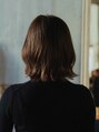 肩上のらいで切りっぱなしボブスタイルにカットして、表面に少しレイヤーを入れることで動きのあるボブスタイルになります。バングは透け感を出した甘すぎない抜け感のあるスタイルに。カラーはアッシュ系の赤みを抑えたブラウンに。