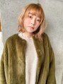 ハイトーンでもできる柔らかさのある色味とコテ巻きでふんわり透け感◎ケアブリーチでダメージ軽減!