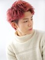 ブリーチカラーでピンクヘアに。ツーブロックで耳周りはスッキリし動きのあるスタイルです。