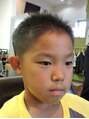 スポーツをやられているお子様は汗をかきやすいので“とにかく短く!”というオーダーが多いんです。でもただ短くするのも・・ということで左右を不対称にしたおしゃれなスタイル。かっちりしすぎないラフさがスタイルにやわらかさを与えてくれる。