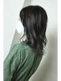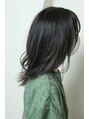 ミディアムレングスのウルフ系レイヤースタイルです。ダークトーンのベースでインナーを入れているので隙間、毛先にちらっと明るめグレーが見えます。
