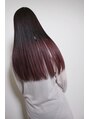 ストレートの艶髪ロングです。ハーフのブリーチ履歴から、くくって隠せる位置にルージュ・ルビー系のピンクカラーのデザインです。ライフスタイルにあわせた楽しみ方におすすめです。