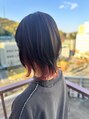 軽やかなミニウルフスタイルに、ピンク系のインナーカラーがアクセントになった個性派スタイル。前髪とサイドにチラ見えするカラーが、動くたびに遊び心を演出。ナチュラルな黒髪とのコントラストで、おしゃれ度も一気にアップ。