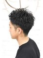 横の膨らみを抑え、フロント、バックにパーマをかけ動きや束感を出しやすくしました!整髪料はジェルワックスです!黒髪でも束感のでるオススメスタイルです!