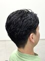 後ろに流れるパーマでセットが手軽に!サイドはツーブロック、後ろも刈り上げて清潔感バッチリで、ビジネスにももってこいのスタイルです。
